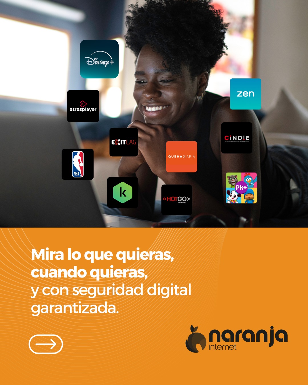 Conéctate rápido y seguro con nuestro servicio confiable y moderno. Vive el lado Naranja del Internet